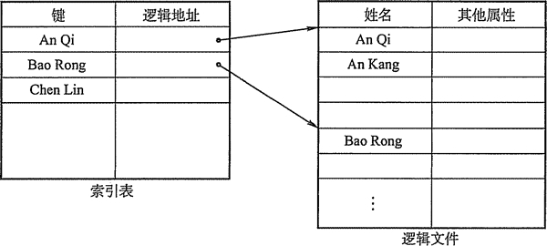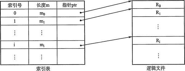 索引文件:对变长记录文件只能进行顺序查找,系统开销较大,为此可以建立一张索引表以加快检索速度,索引表本身是定长记录的顺序文件。