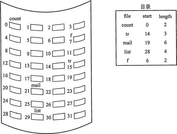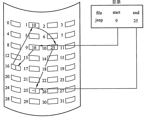 创建新文件时,目录中增加一个新条目。每个目录项都有一个指向文件首块的指针。该指针初始化为NULL以表示空文件,大小字段为0。写文件会通过空闲空间管理系统找到空闲块,将该块链接到文件的尾部,以便写入。读文件则通过块到块的指针顺序读块。