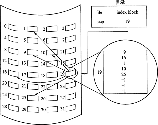 每个文件都有其索引块,这是一个磁盘块地址的数组。索引块的第i个条目指向文件的第i个块。目录条目包括索引块的地址。要读第i块,通过索引块的第i个条目的指针来查找和读入所需的块。