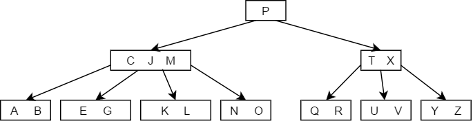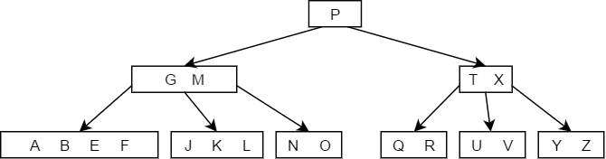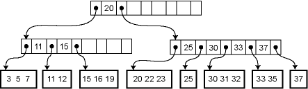 左右两边的*号为指向其子树树根的指针,而且数字左边的指针所指向的子树中的关键字均小于当前数字,数字右边的指针所指向的子树中的关键字均大于等于当前数字。