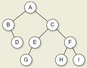 先序遍历首先访问的为根节点,由先序遍历的序列可知第一个根节点为A,然后我们在中序遍历里面查找A,因题目已经给出条件You may assume that duplicates do not exist in the tree.说明树中没有重复元素了,所以我们可以直接在中序遍历的序列里查找根节点A所在的位置,依中序遍历规则可知,A前面的元素BD即为A作为根节点时的左孩子,A后面的元素GECHFI即为A作为根节点时的右孩子,然后再向下递归得到以结点B为根节点的子树,依次递归直至先序遍历序列完成一遍时算法结束。
