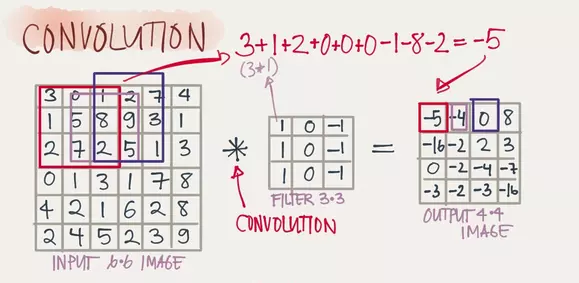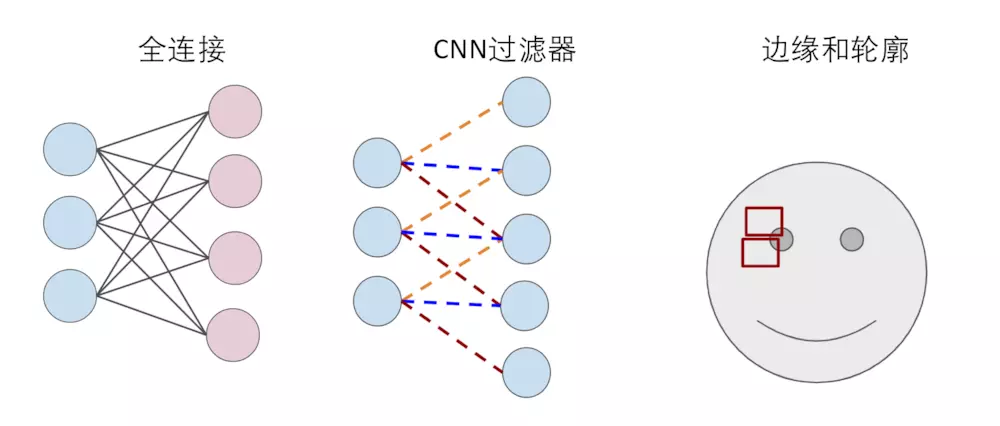 这个时候卷积神经网络(CNN)就派上用场了,卷积神经网络可以简单地理解为,用滤波器(Filter)将相邻像素之间的轮廓过滤出来,如图: